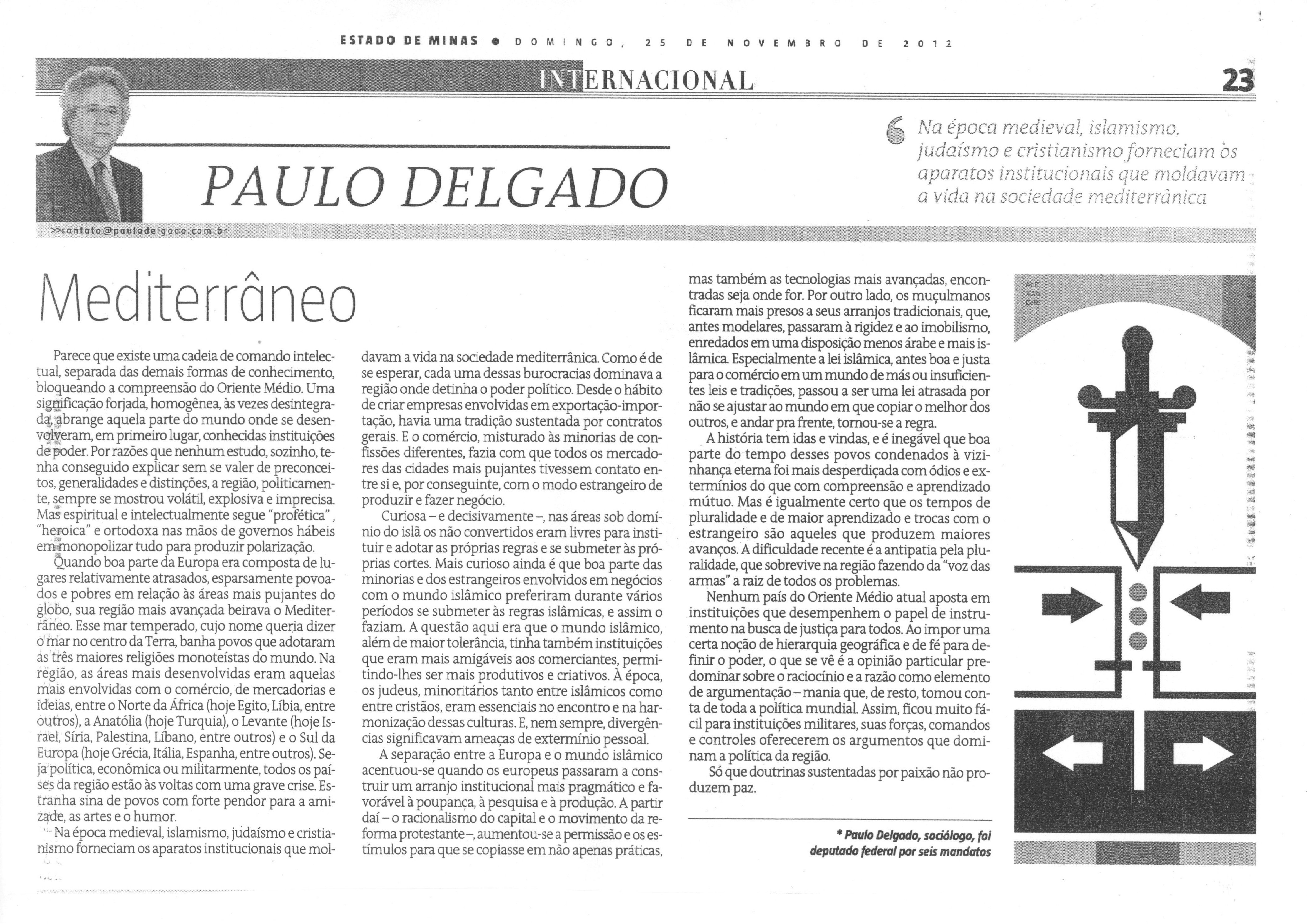 Correio Braziliense e Estado de Minas – domingo, 25 de novembro de 2012.
